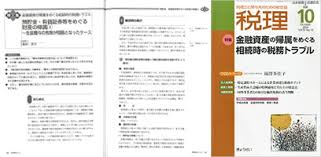 ■月刊税理2014年10月号「預貯金・有価証券等をめぐる財産の帰属~生前贈与の有無が問題となったケース」執筆